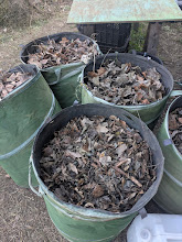 踏み込み温床の用意。一週間前に落ち葉を集めて、米の研ぎ汁…