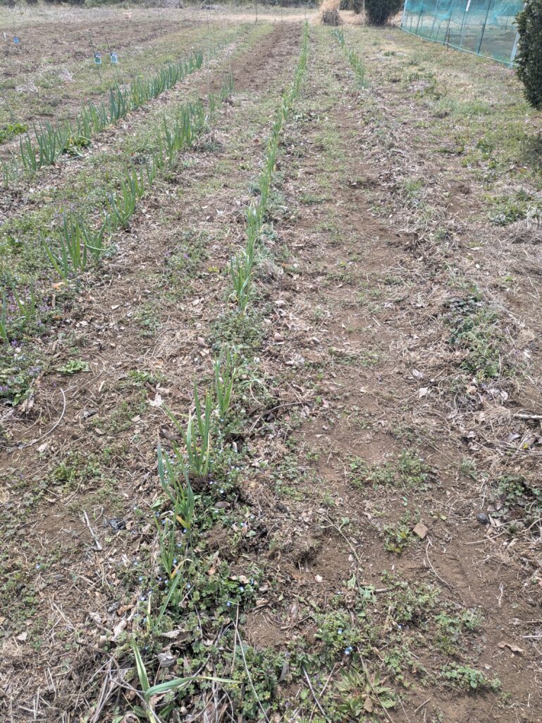 エンドウ、ソラマメ除草する。その他ニンニク、らっきょうなども。そろそろ、エンドウ、そら豆の支柱たてなので、準備。
